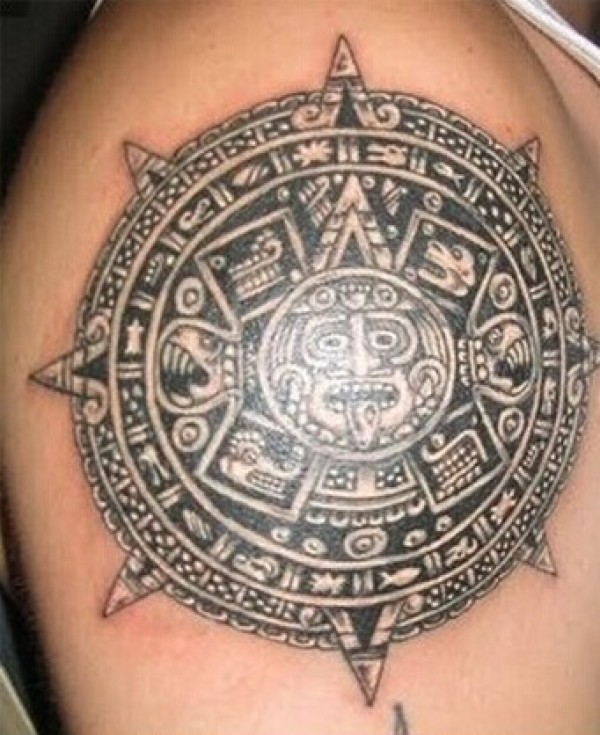 大臂上帅气的太阳图腾纹身
