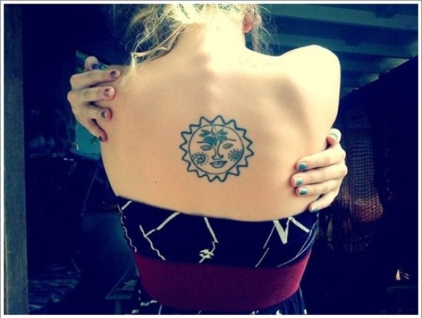 女生背部漂亮好看的太阳纹身