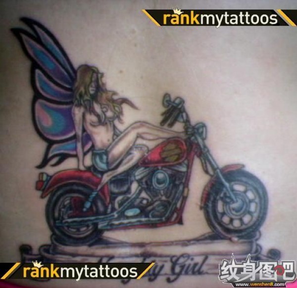 坐在摩托车上的性感美女纹身