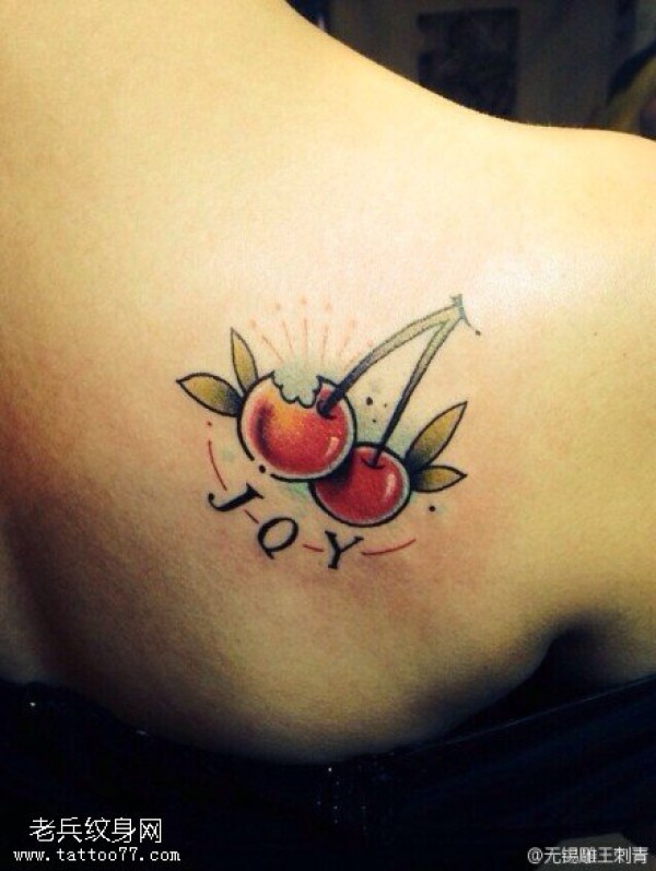 背部彩色樱桃纹身图片