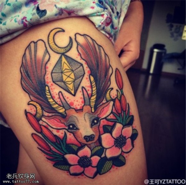 传统花腿纹身--18张传统风格的大花腿纹身图案作品