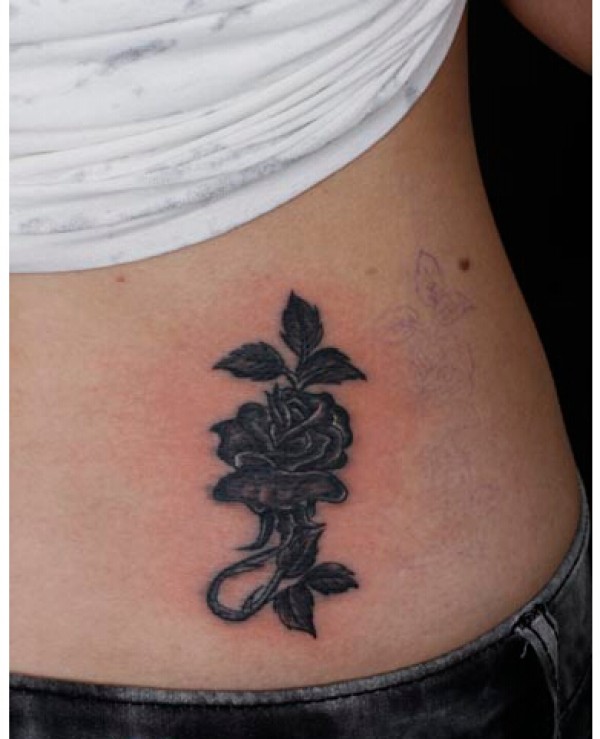腰部就没啥事好看的黑白玫瑰花纹身图