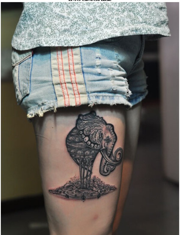 小腿上一款大象纹身图案_腿部纹身图案大全_纹身图吧