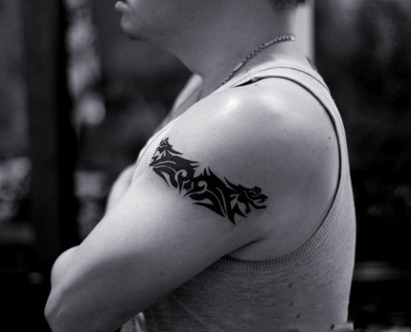 男生手臂黑白龙图腾纹身图片