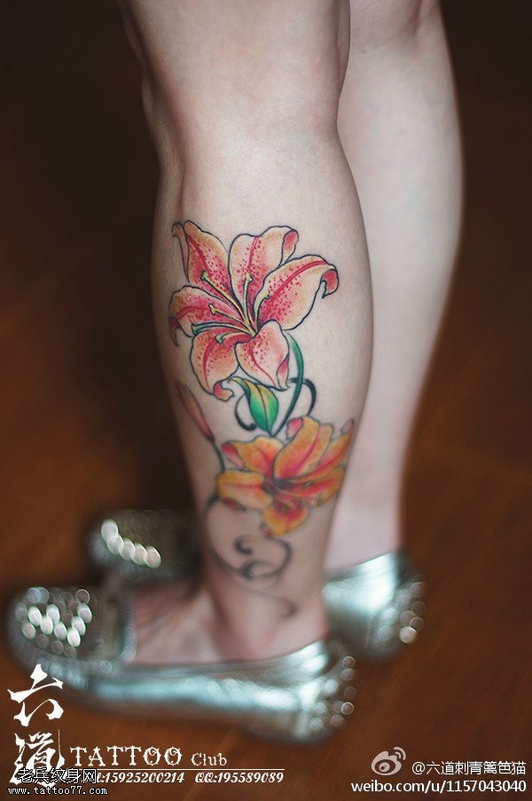 清新花朵腿部纹身图案图片_植物纹身图案大全_纹身图吧
