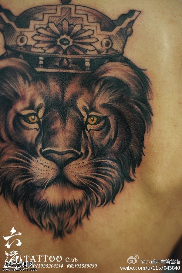 眼似铜铃双目生严皇冠狮子纹身图案