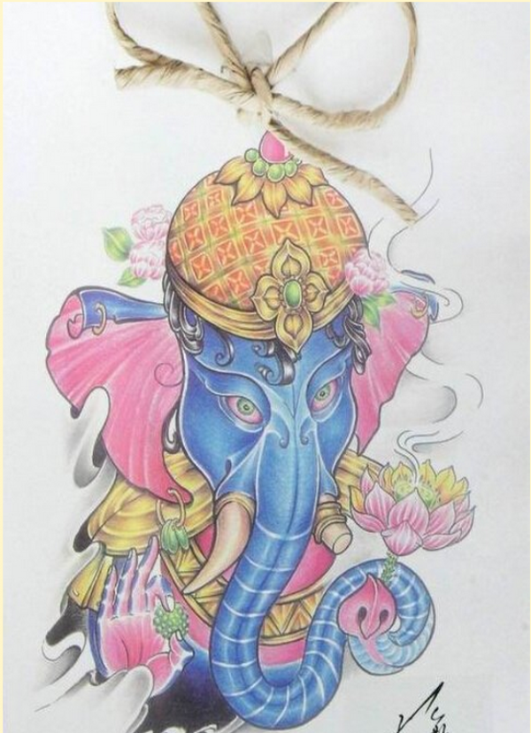 个性时尚彩色象神纹身手稿图片图片