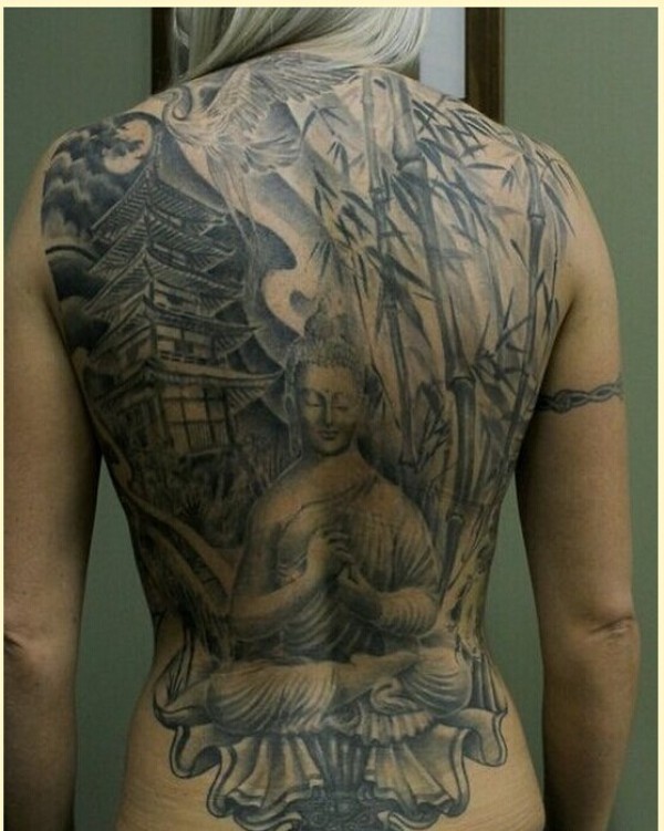时尚满背个性佛纹身图案欣赏图片