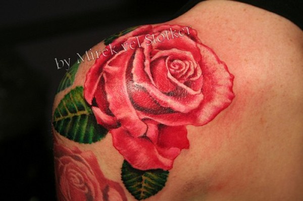 女生肩花纹身_15张女性双肩对称的肩花纹身图案作品图片