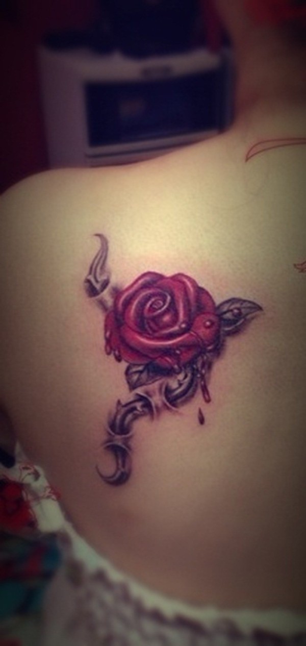 肩部妖艳的玫瑰纹身