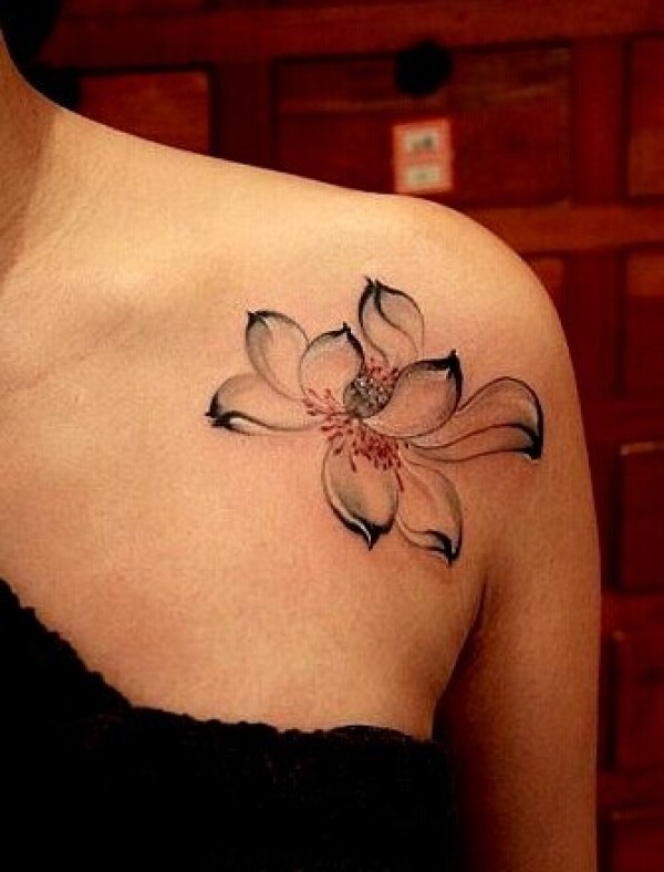 女生肩花纹身_15张女性双肩对称的肩花纹身图案作品图片