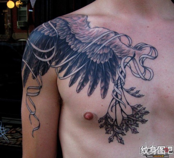 女生肩花纹身_15张女性双肩对称的肩花纹身图案作品图片
