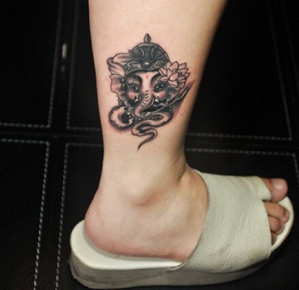漂亮脚踝可爱好看的小象神纹身作品图片