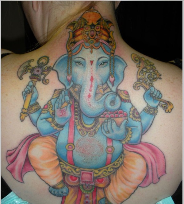 个性背部时尚经典蓝色的象神纹身图片图片
