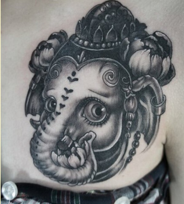 时尚女生胸口个性的象神纹身