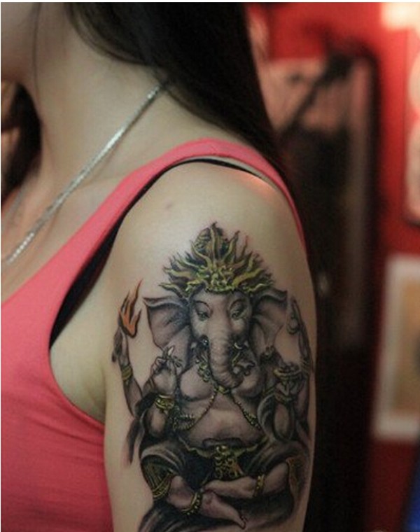 女生手臂唯美时尚象神纹身