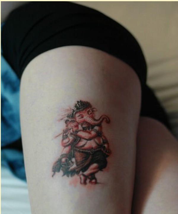 美女腿部经典时尚的象神纹身