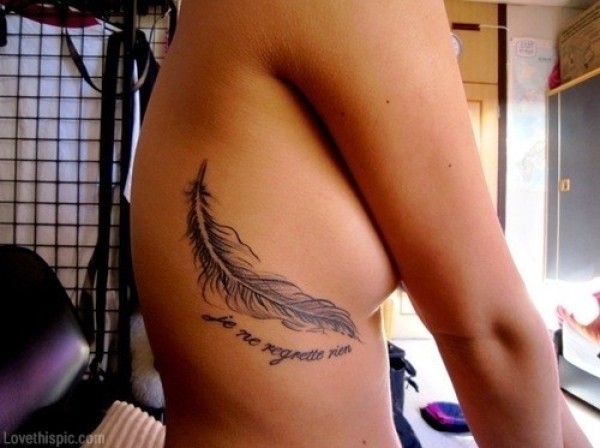 女生肋部漂亮唯美的羽毛纹身