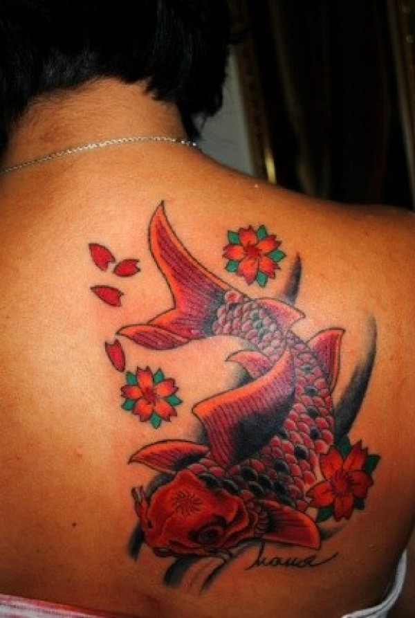 肩部传统的鲤鱼纹身