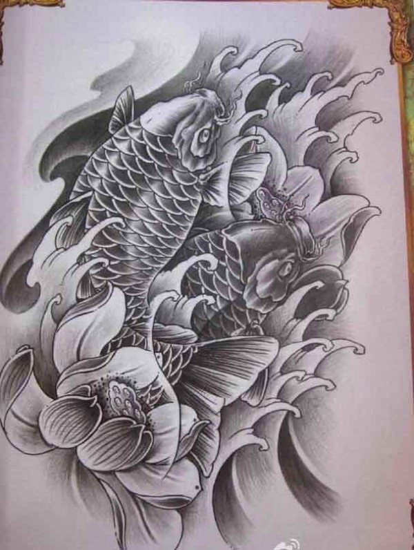 双鱼座纹身手稿_45张十二星座之双鱼手稿纹身图案