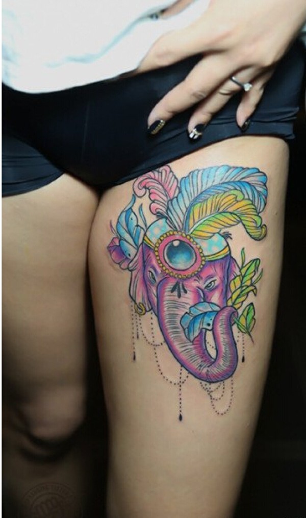 小腿上一款大象纹身图案_腿部纹身图案大全_纹身图吧