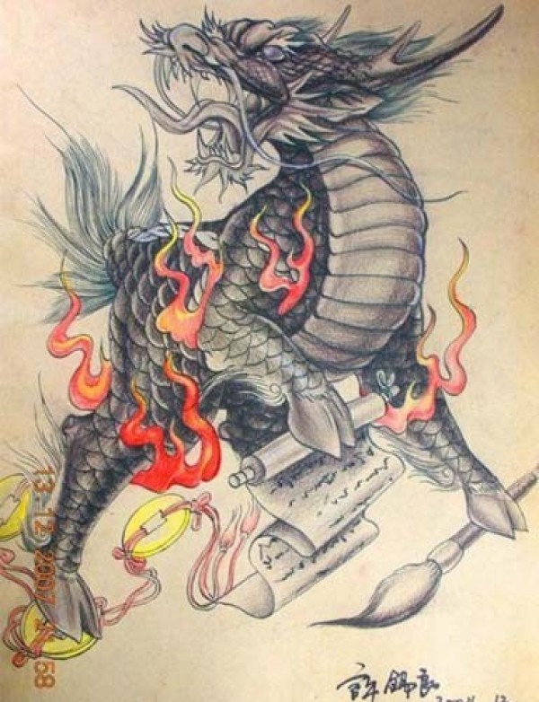 龙纹身手稿_一组老传统黑灰龙手稿纹身图案