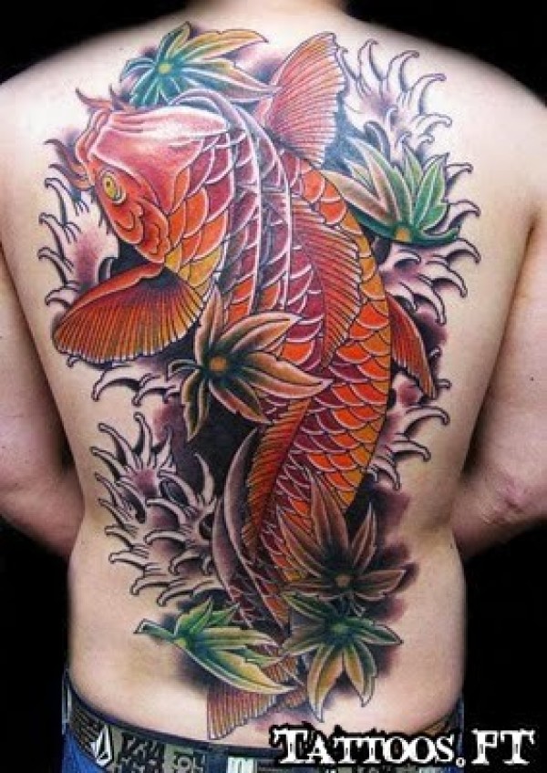 大气好看的满背鲤鱼纹身