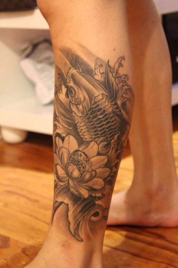 传统鲤鱼花小腿纹身_腿部纹身图案大全_纹身图吧