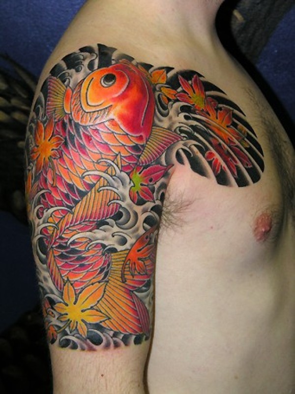 经典帅气的半甲鲤鱼纹身