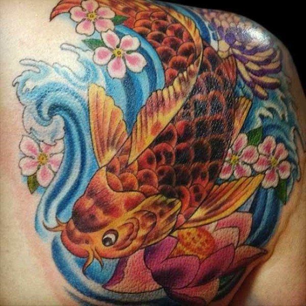肩部经典的中国鲤鱼纹身