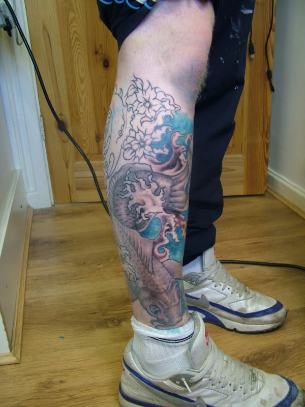 小腿部非常拉风的鲤鱼纹身