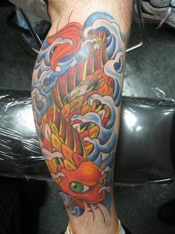 传统鲤鱼花小腿纹身_腿部纹身图案大全_纹身图吧