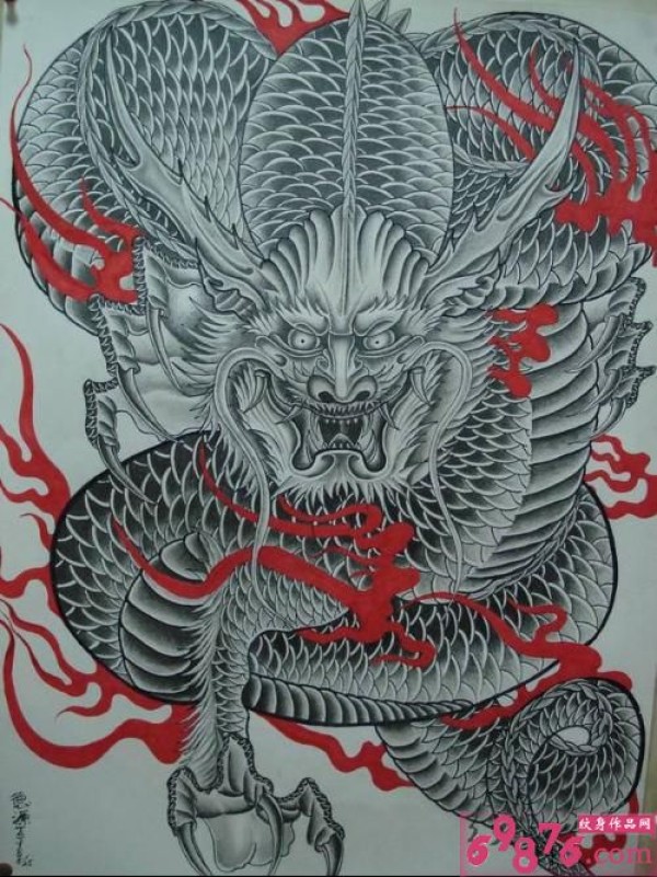 龙纹身手稿_一组老传统黑灰龙手稿纹身图案