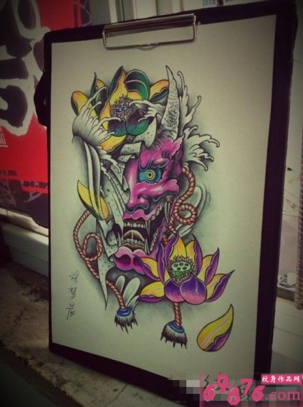 能面万媚纹身手稿_52张日式能剧面具纹身手稿图案素材欣赏
