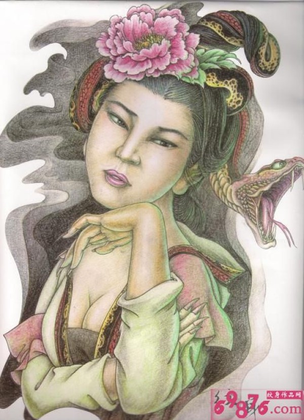 能面万媚纹身手稿_52张日式能剧面具纹身手稿图案素材欣赏