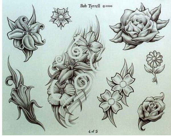 唯美好看的牡丹玫瑰百合纹身手稿图案