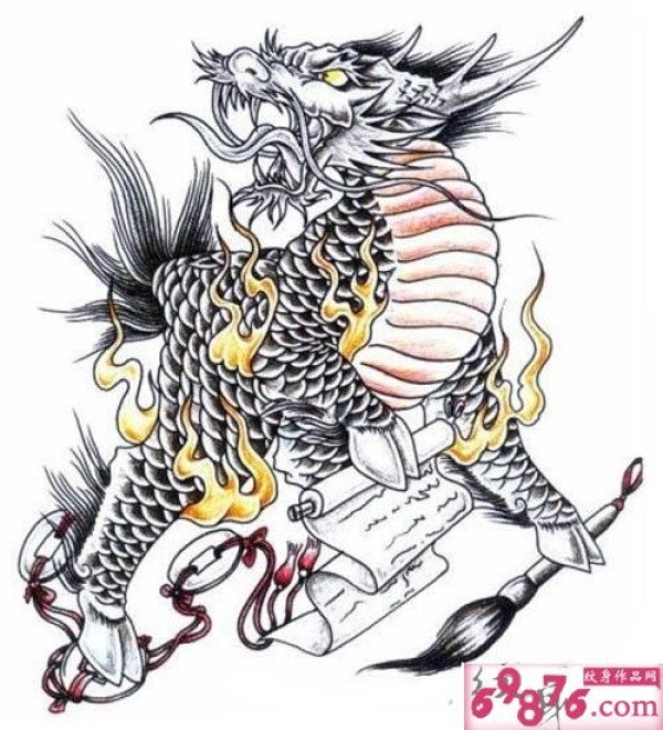 龙纹身手稿_一组老传统黑灰龙手稿纹身图案