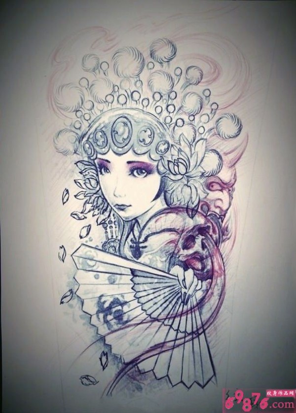能面万媚纹身手稿_52张日式能剧面具纹身手稿图案素材欣赏