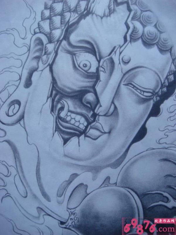 能面万媚纹身手稿_52张日式能剧面具纹身手稿图案素材欣赏
