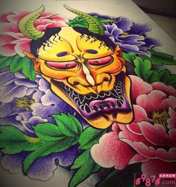 能面万媚纹身手稿_52张日式能剧面具纹身手稿图案素材欣赏