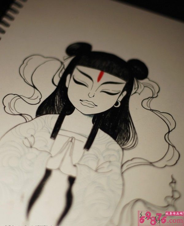 传统艺妓般若纹身图案手稿