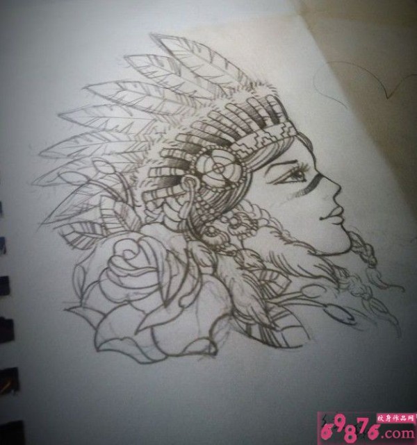 印第安美女头像纹身手稿图片