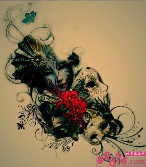 能面万媚纹身手稿_52张日式能剧面具纹身手稿图案素材欣赏