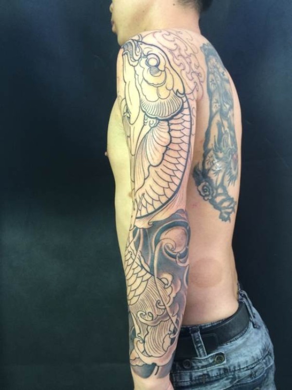 日式手彫刺青作品—半甲龙很感谢客户认可手彫刺青,手彫是日本纹身的手工雕刻技术,时间可以追溯到日本17世纪的江户时代。19世纪,手彫技术被日本黑帮挪用,被用作入会仪式,象征着从此就是江湖中人。在日式传统