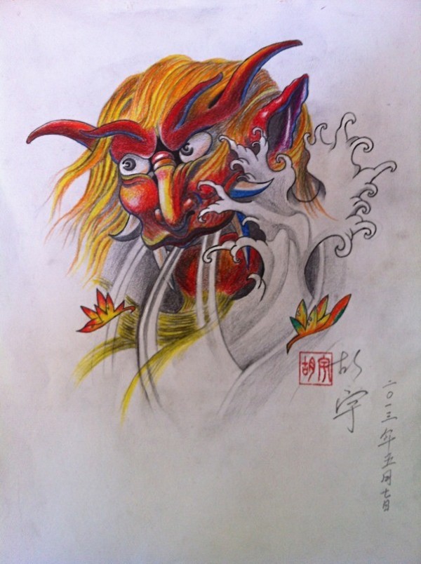 能面万媚纹身手稿_52张日式能剧面具纹身手稿图案素材欣赏