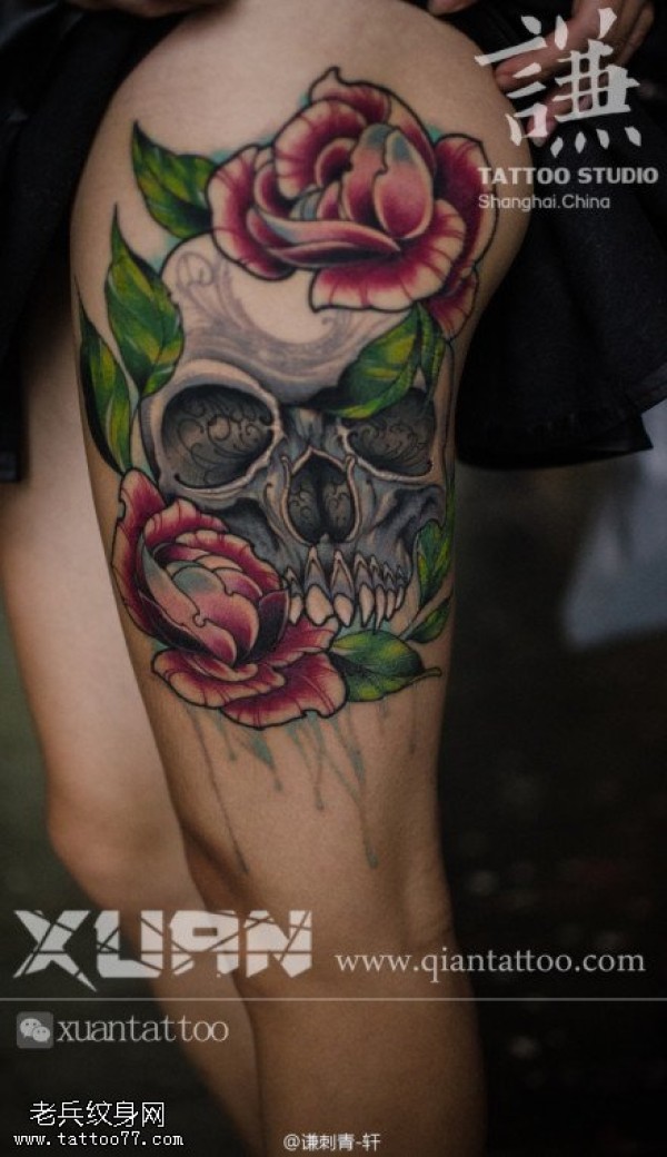 传统花腿纹身--18张传统风格的大花腿纹身图案作品