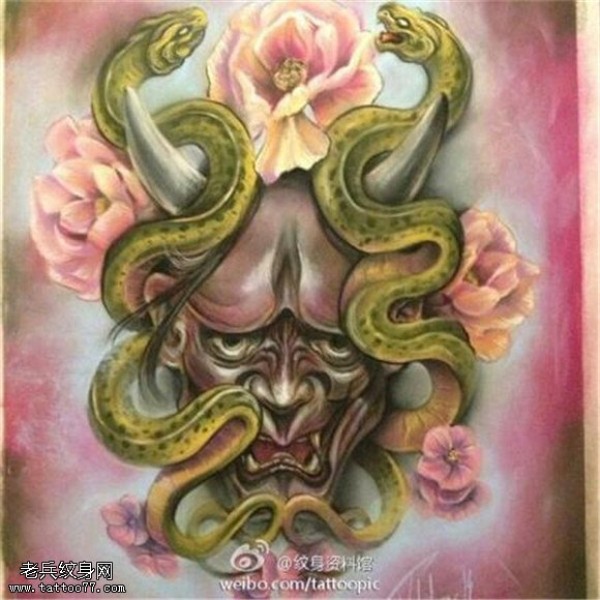 能面万媚纹身手稿_52张日式能剧面具纹身手稿图案素材欣赏