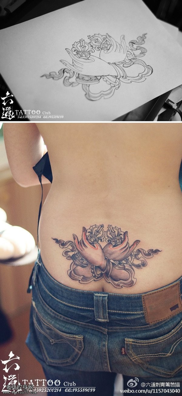 女性腰部莲花花纹刺青_腰部纹身图案大全_纹身图吧