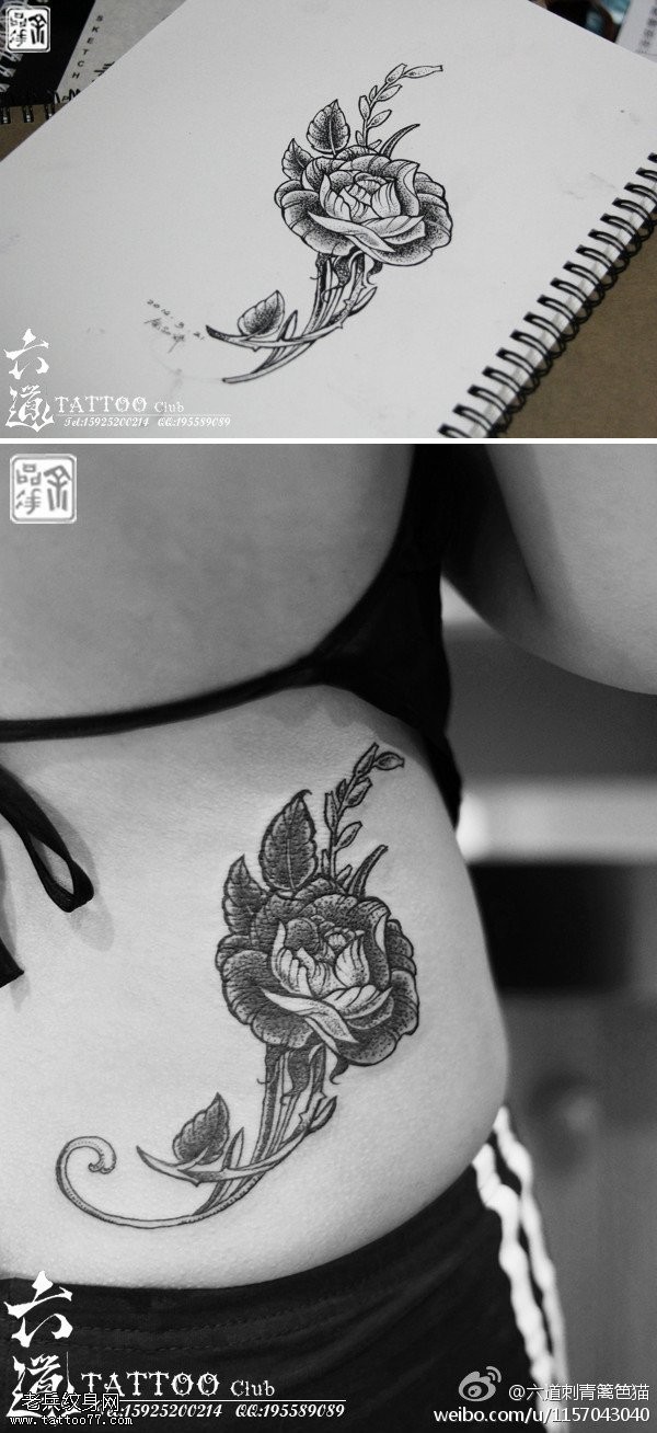 女性腰部莲花花纹刺青_腰部纹身图案大全_纹身图吧