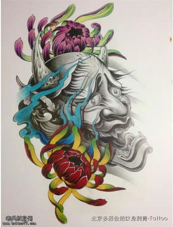 能面万媚纹身手稿_52张日式能剧面具纹身手稿图案素材欣赏